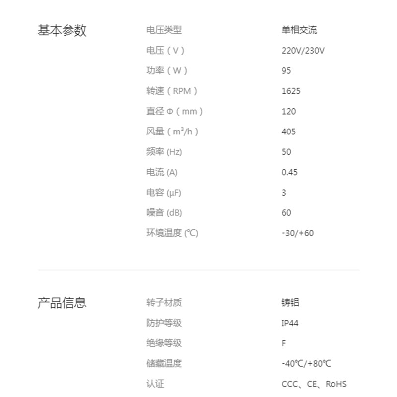YWF.F2S-120-120AA00全新原裝IP44保護絕緣F級鼓風機E