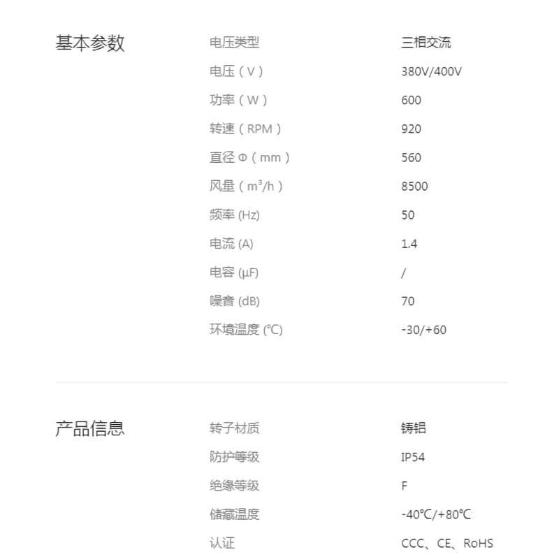 1. YWF.B6T-560-243AA20全新560系列后傾離心風機低噪音大