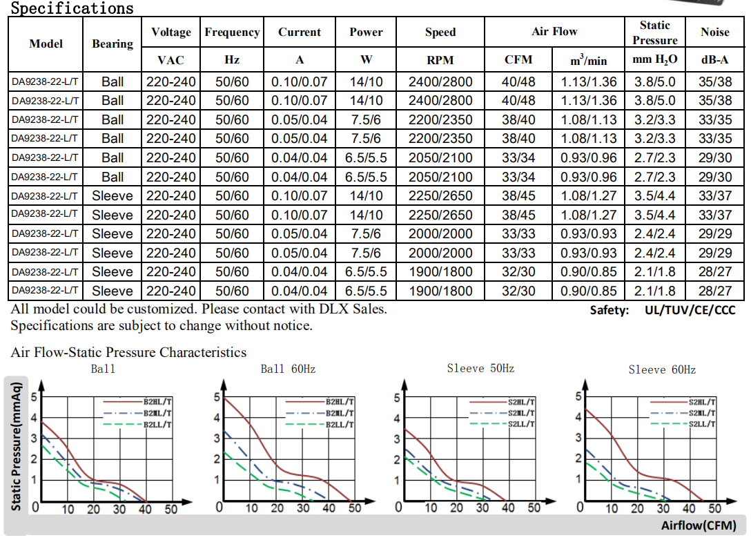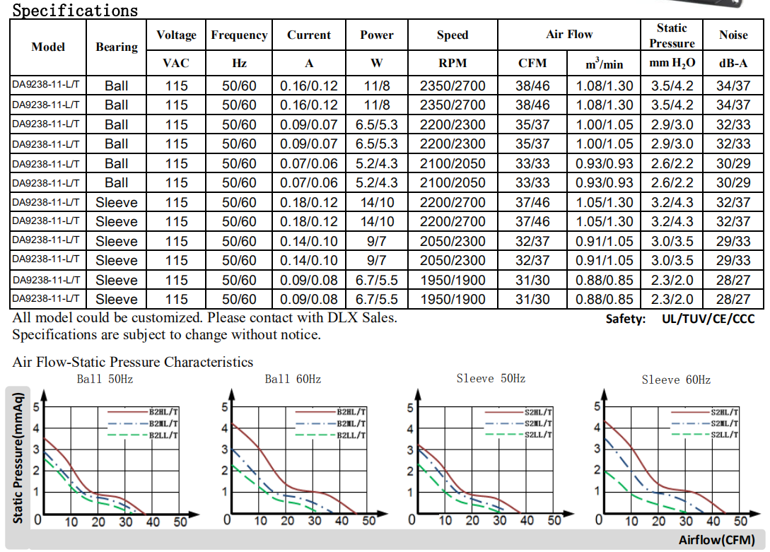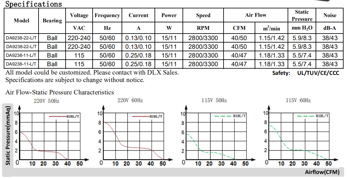 92 x 92 x 38mm DA9238 115/220V軸流風機,ul ce認證廠家直銷可定制