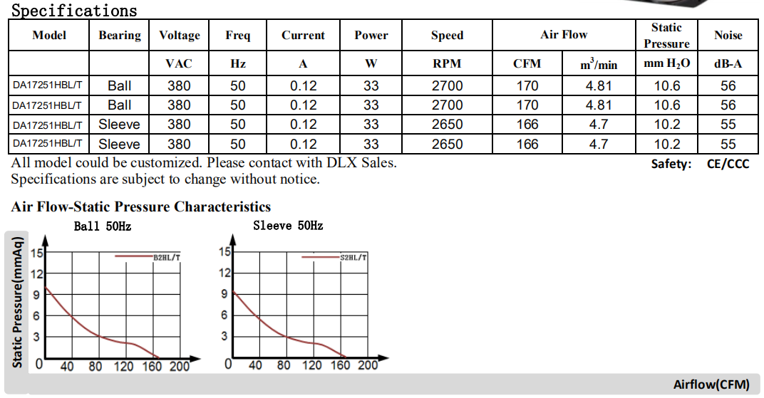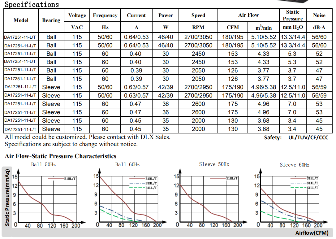 Φ172 x 150 x 51mm DA17251 115/220/380V軸流風扇17厘米風機可定制,UL認證CE認證