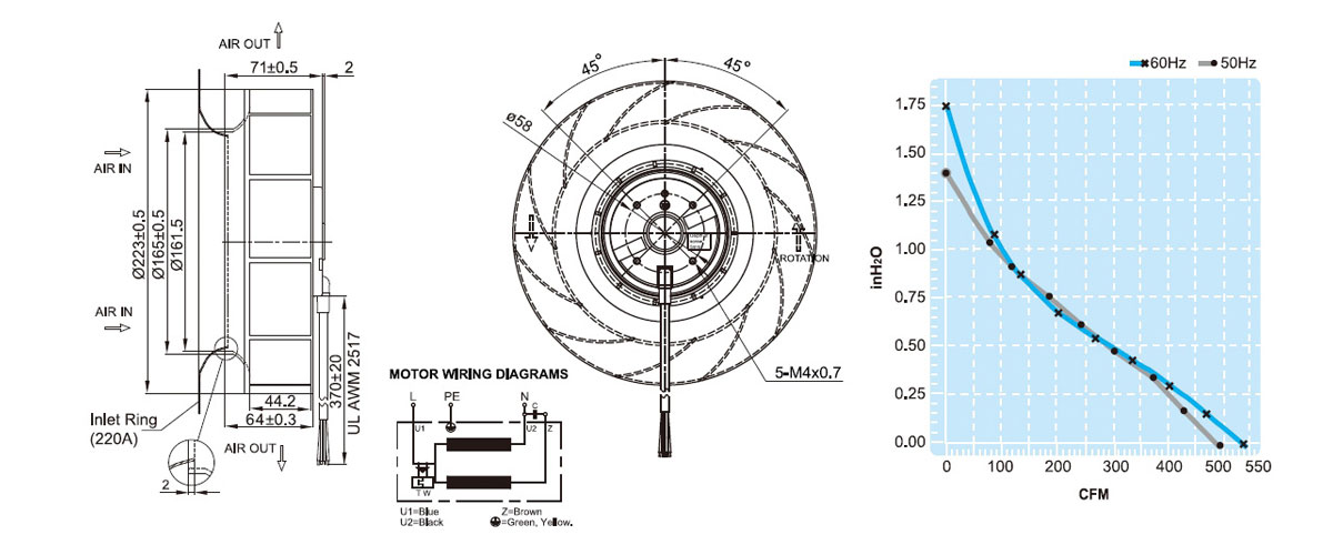 1. UF220APA11H2C2F渦流式工頻離心風(fēng)機(jī)空氣凈化器風(fēng)扇高品質(zhì)低噪音