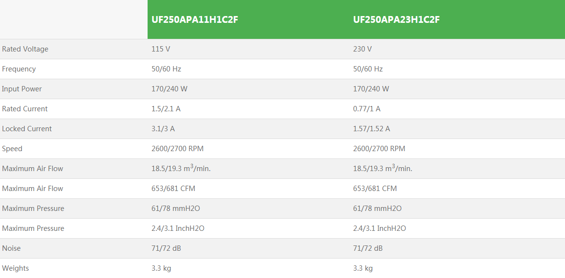 原裝臺灣進口UF250APA11HAC2F離心風機圓形管道前后傾式離心風機