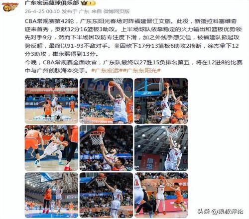CBA常規(guī)賽收官戰(zhàn),廣東客場93-93不敵福建,歷史上首次賽季遭到對手雙殺。