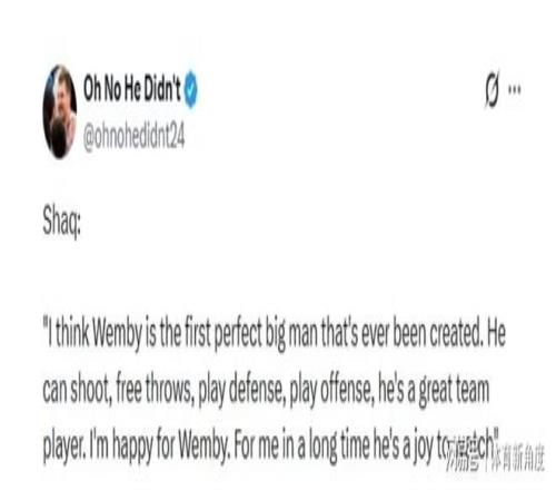 即便如此,我依然覺(jué)得他的每一次出手都那么合理,那么令人賞心悅目。在我心中,他就是內(nèi)線球員的完美標(biāo)桿,一個(gè)活生生的例子,告訴我們什么是真正的全能與高效。作為內(nèi)線球員的代表,我本去贊美誰(shuí),但文班亞馬,他值得這份特別的贊譽(yù)。”