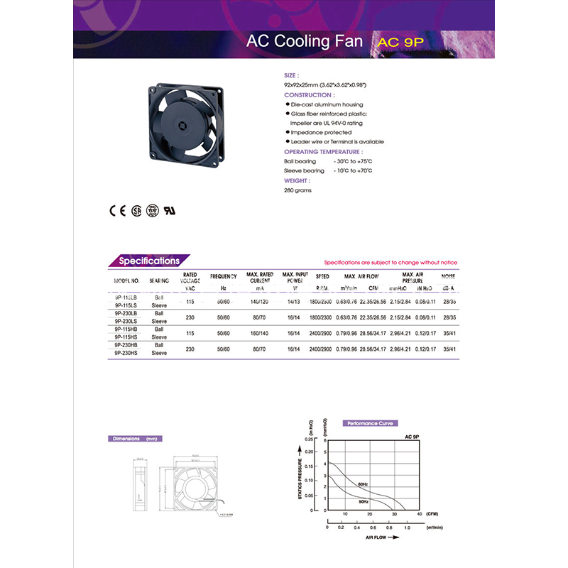 9P115HB臺灣百瑞全系列軸流風扇